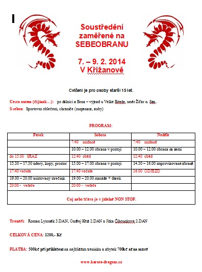 Nakonec bych vás, občany Rosic a blízkého okolí, rád pozval na nábor našeho oddílu Karate Club Dragons Rosice, každoročně spojeného s ukázkami tohoto bojového umění. Nábor se bude konat 11.9.2014 v 18.00 hod ve školní tělocvičně pod rosickou poštou.