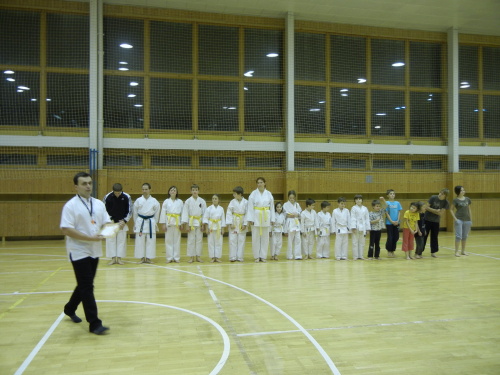 Třešničkou na dortu byl pro „rosické draky“ vánoční turnaj v karate pořádaný 19.12.2011. Jednalo se o soutěž, ve které „závodníci“ našeho clubu ukázali své znalosti a dovednosti. Aby byla soutěž spravedlivá pro všechny členy, soutěžilo se ve třech disciplínách. První disciplíny se účastnili pouze začátečníci a soutěžili v technikách na místě – KIHON. Druhá disciplína patřila mírně pokročilým, kteří závodili v technikách při chůzi – KIHON IDO. Nakonec se mezi sebou utkali pokročilí v KATA – bojová sestava. Výsledky jsou takové: