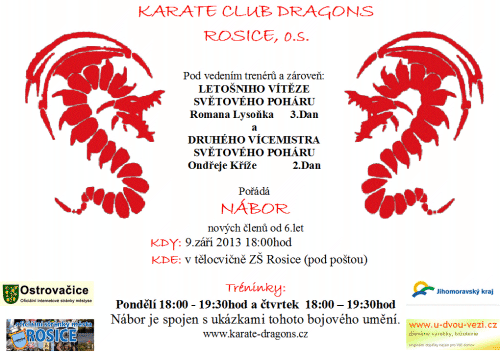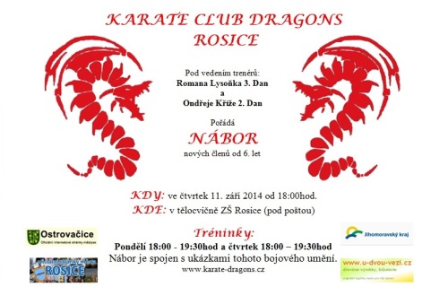 Ve čtvrtek 8.9.2016 se v rosické školní tělocvičně konal nábor nových členů pro rok 2016 / 2017. Roman Lysoněk, jako hlavní trenér oddílu, představil oddíl a popsal jeho normální chod. Nechyběli zde ani praktické ukázky, které předvedlo 13 našich nejlepších svěřenců.
