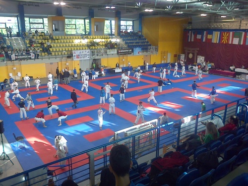 Turnaje se zúčastnilo přes 800 závodníků z více jak 20 států Evropy a světa. Shrnutím výsledků se dá říci, že se jí dařilo. Ve čtyřicetičlenném juniorském a seniorském týmu, vedeném Miroslavem Hýskem a Ivou Keslovou se podařilo hned první den vybojovat na 11 medailí. V disciplíně kata mužů, kde byla tento den opravdu silná konkurence kvalitních závodníků na vyšší úrovni evropského karate, startovalo na devět našich zástupců a až na zlatou medaili se jim podařilo zanechat po sobě velmi dobrý, jak výkonností, tak i technický dojem.