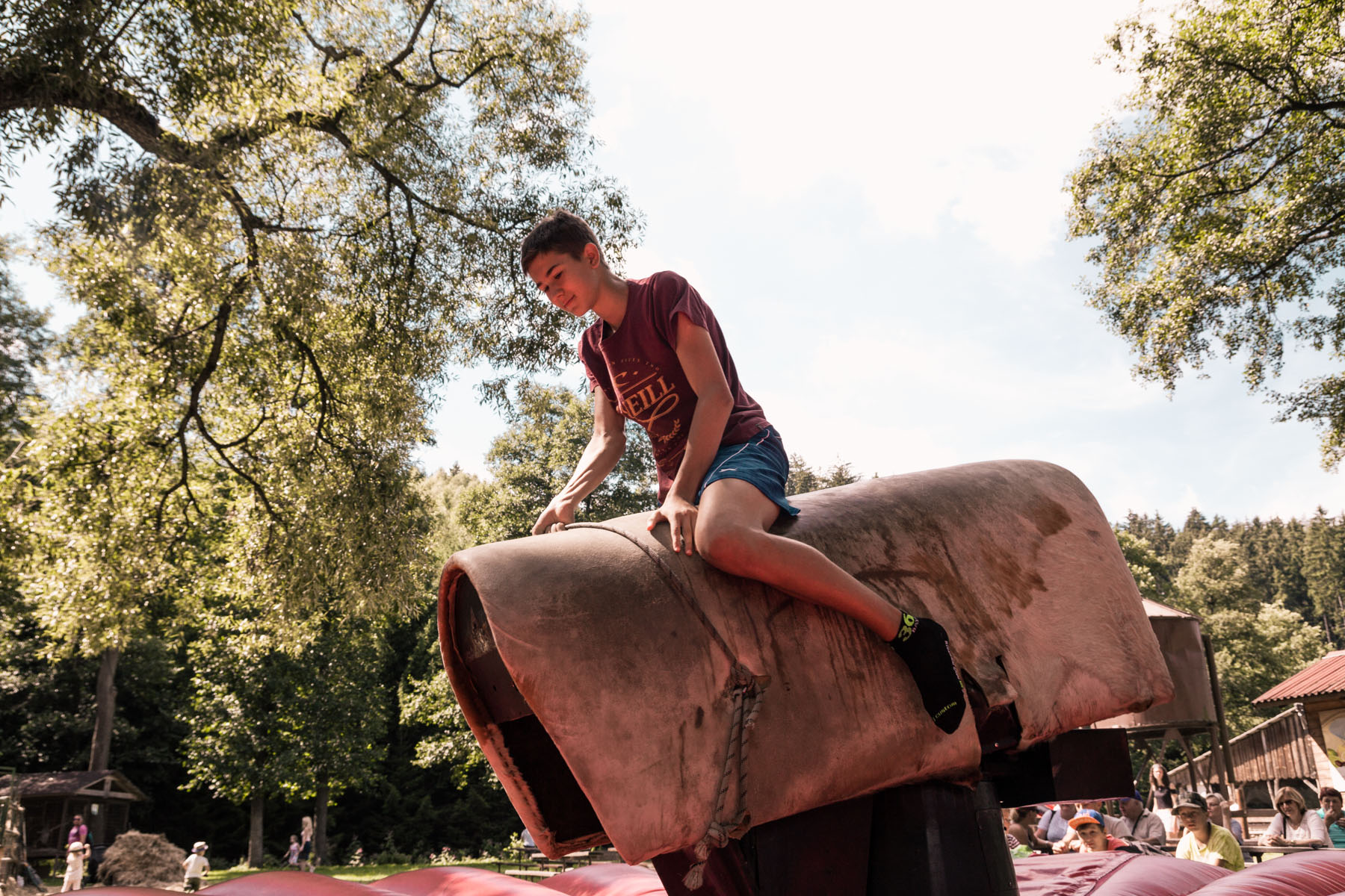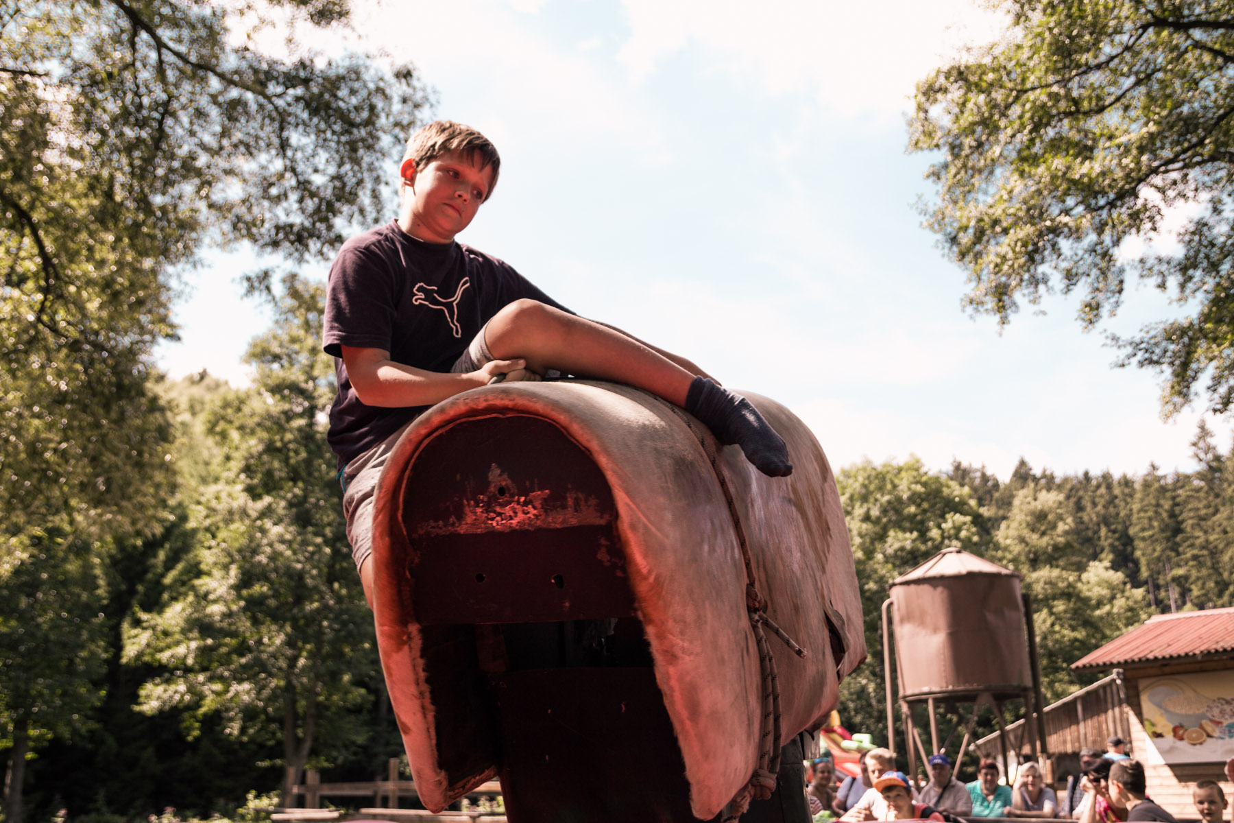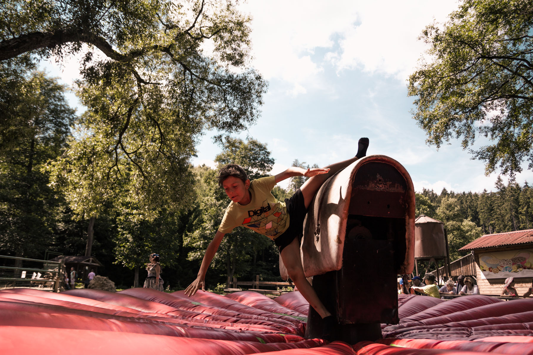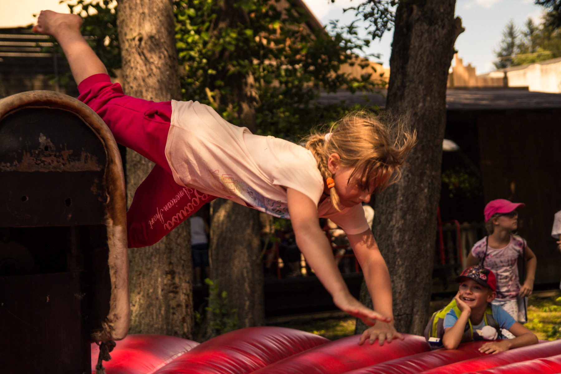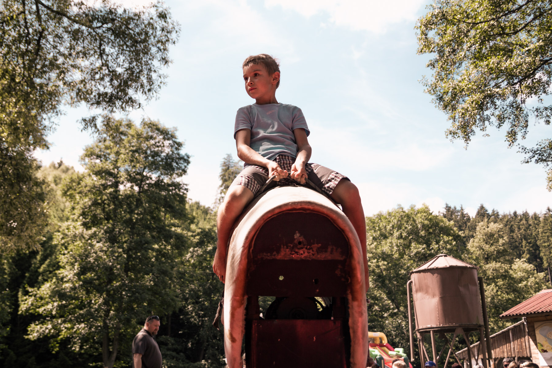 Den třetí letního soustředění: pěší výlet do Šiklova Mlýna a jízda na elektrickém býkovi.