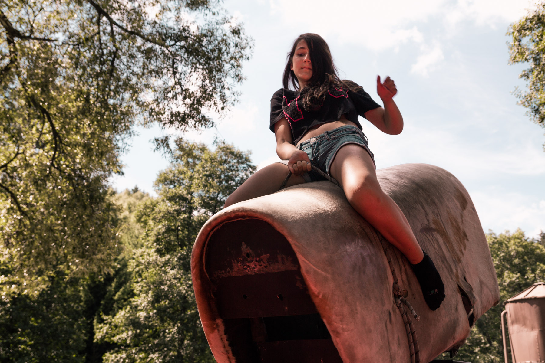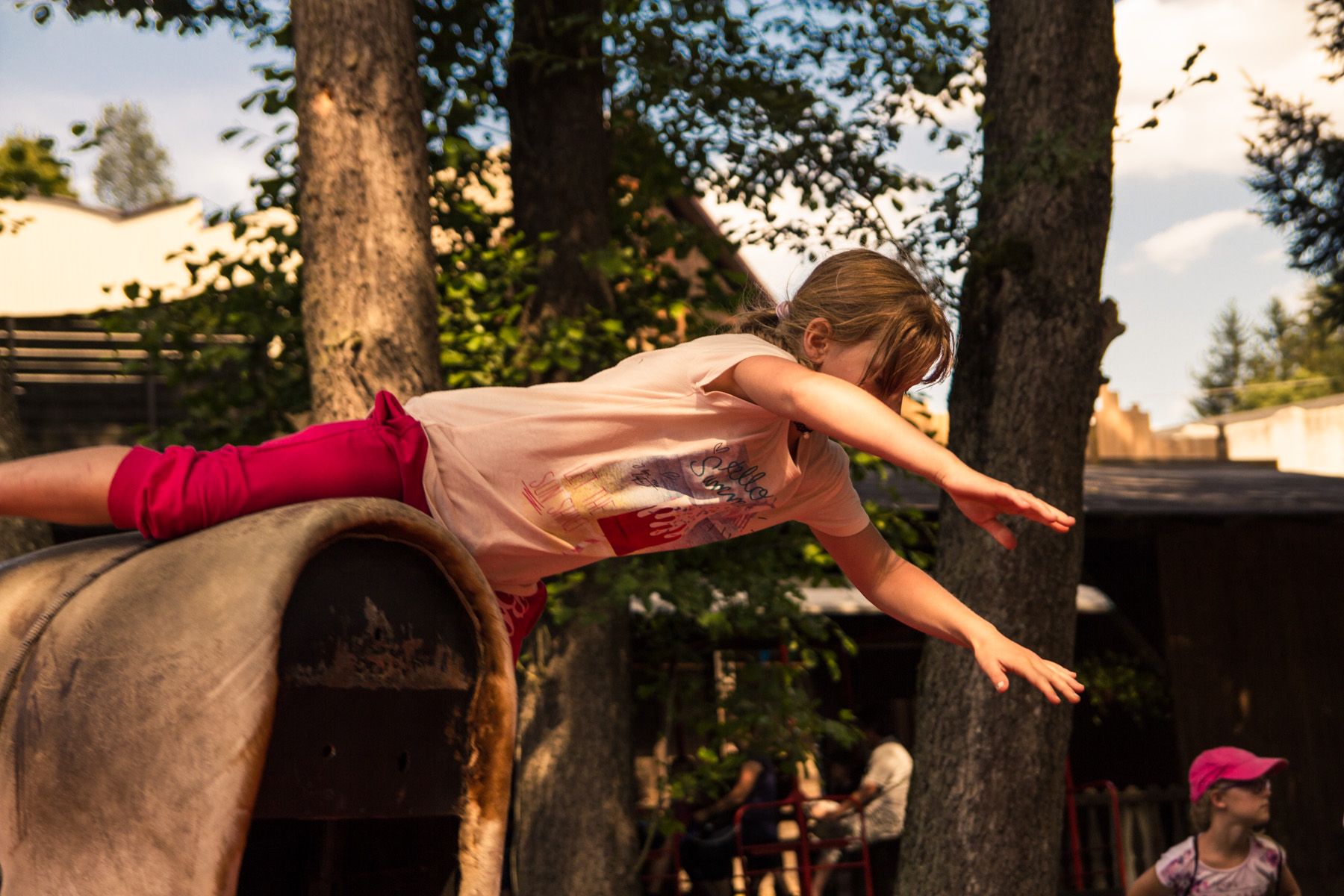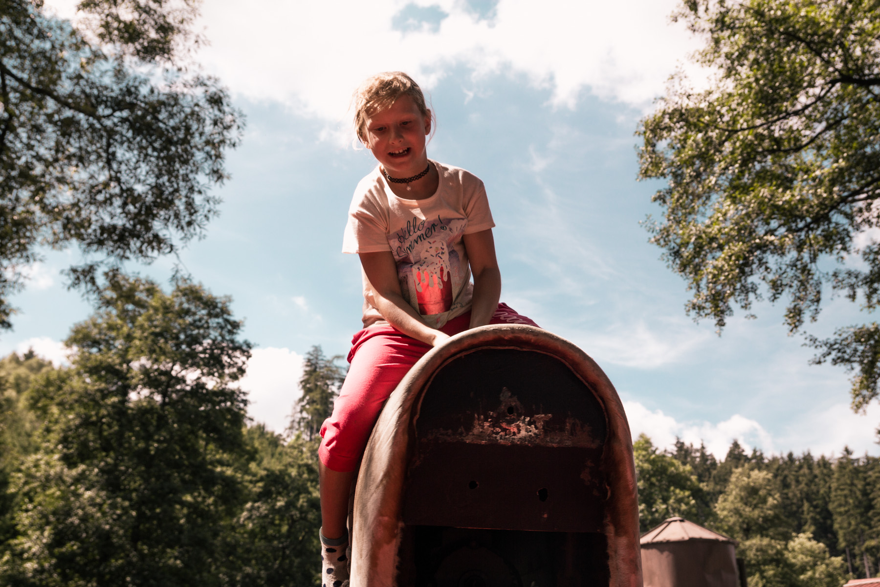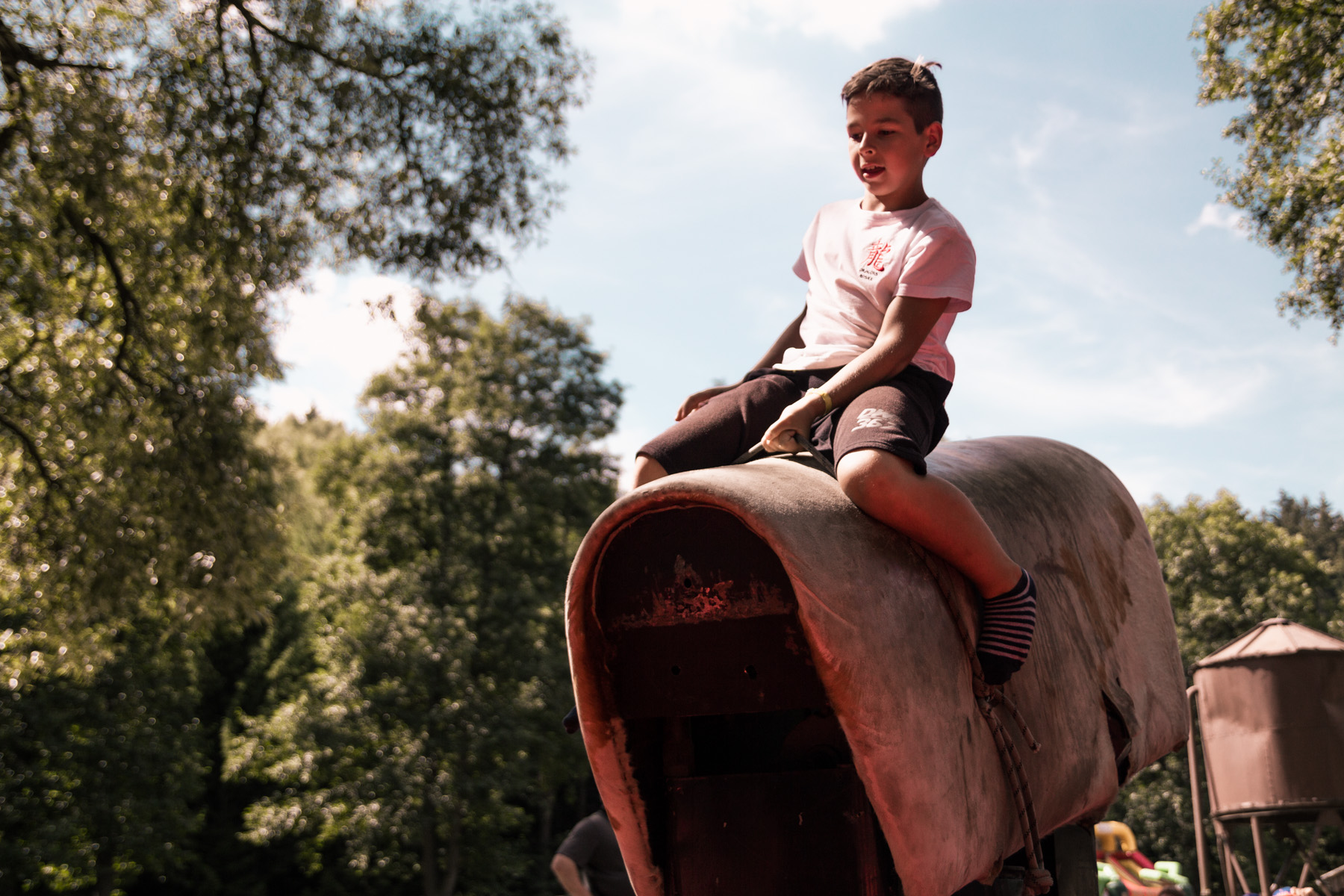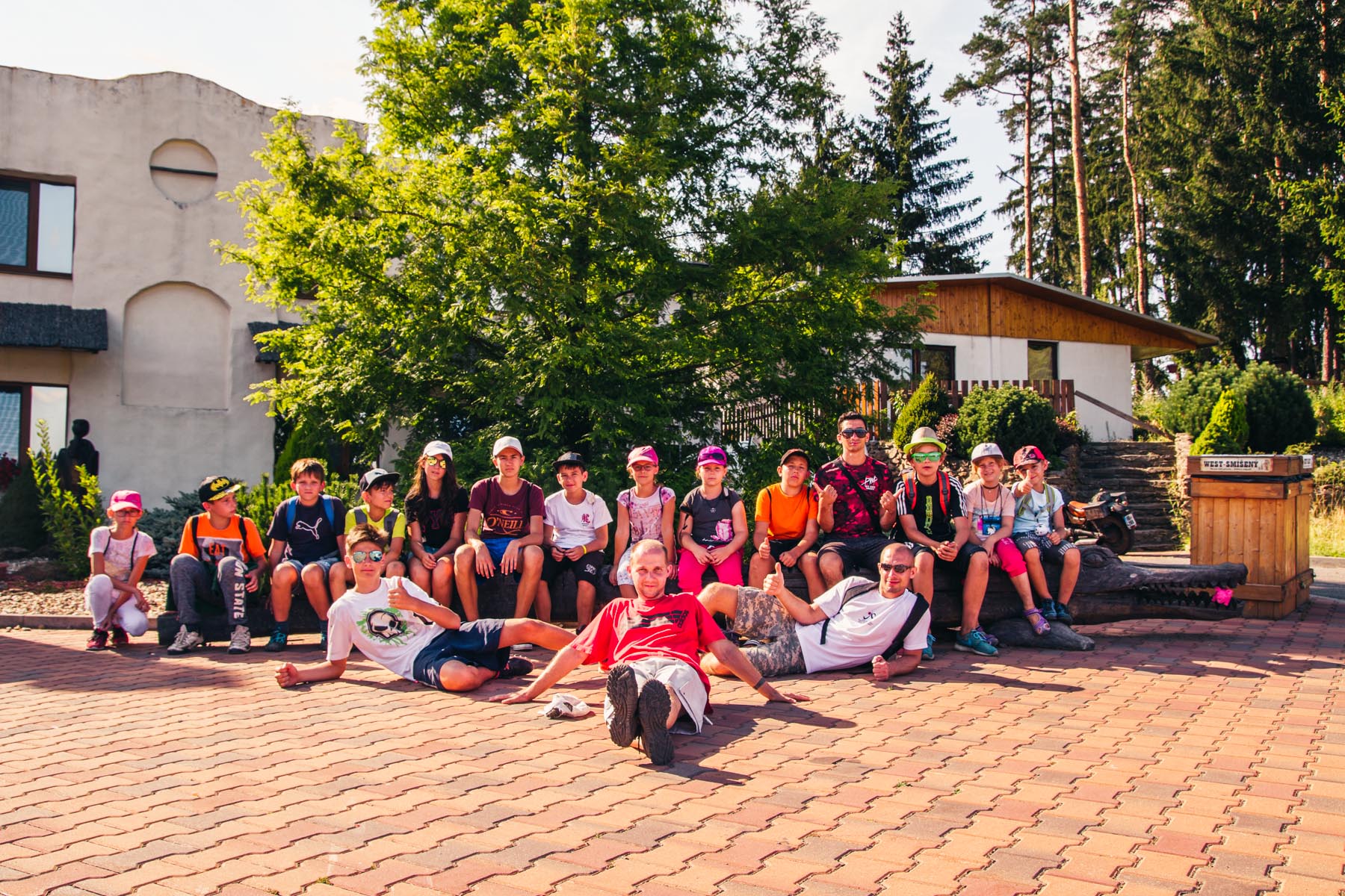 Den třetí letního soustředění: pěší výlet do Šiklova Mlýna a jízda na elektrickém býkovi.