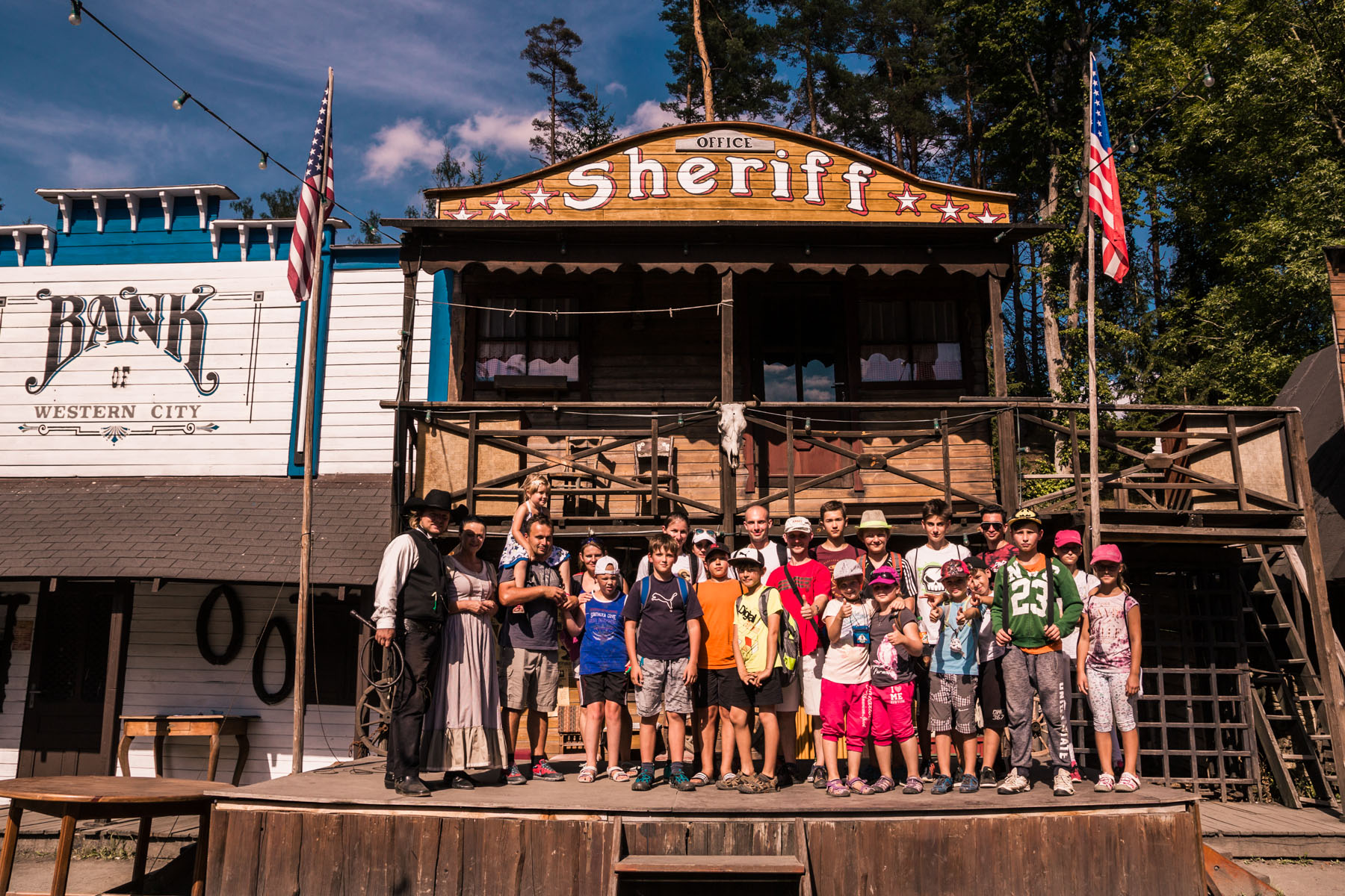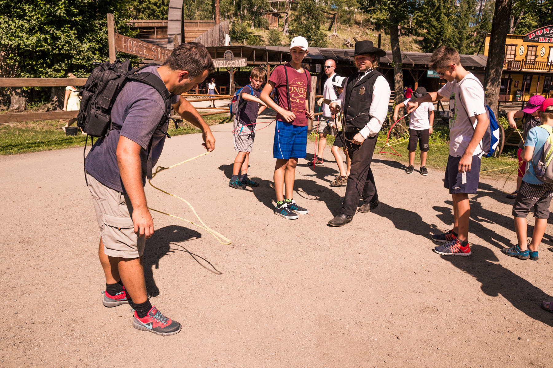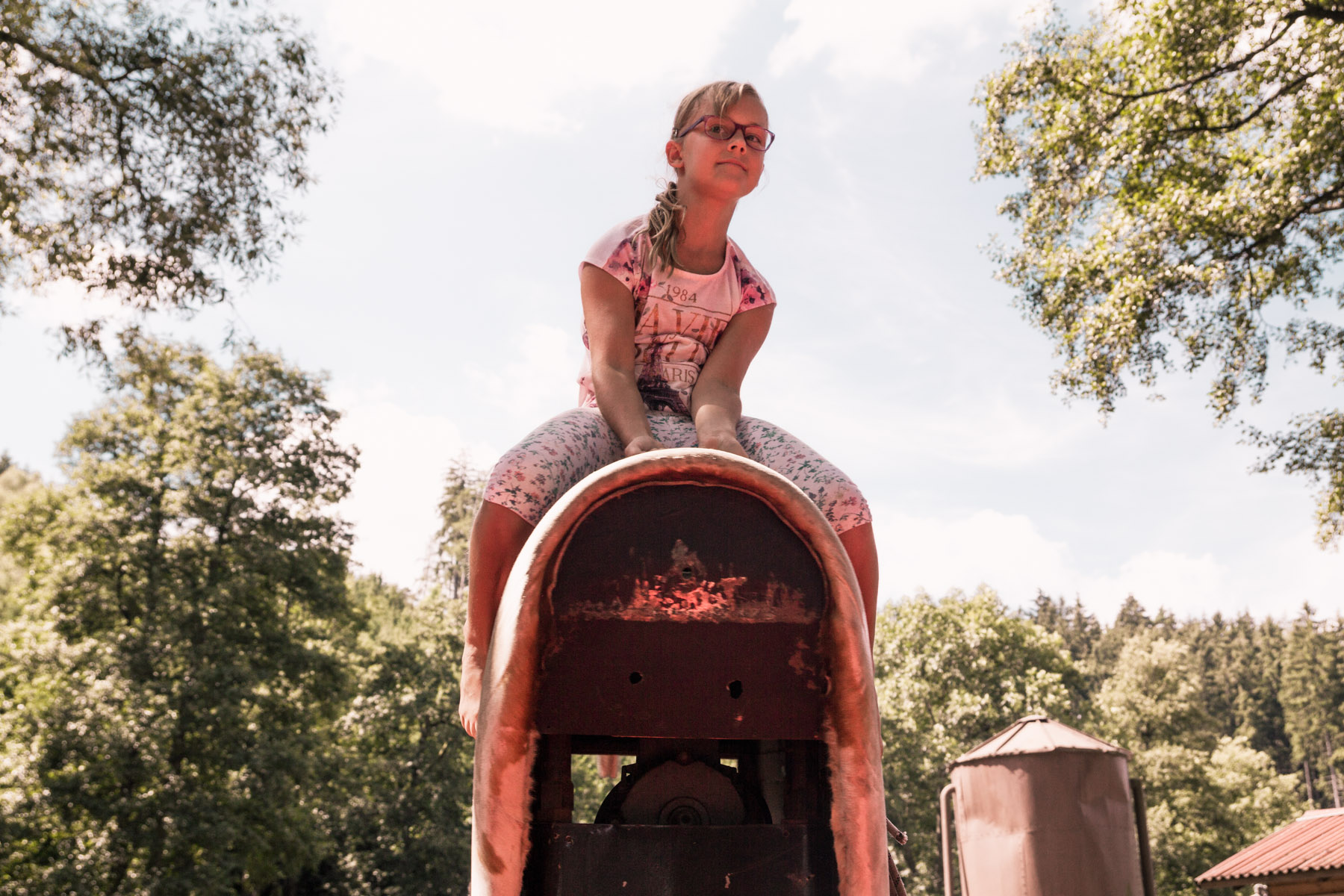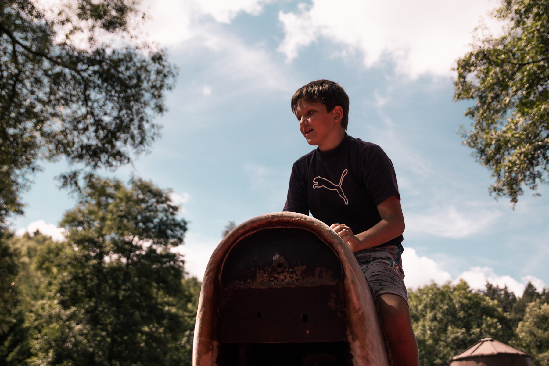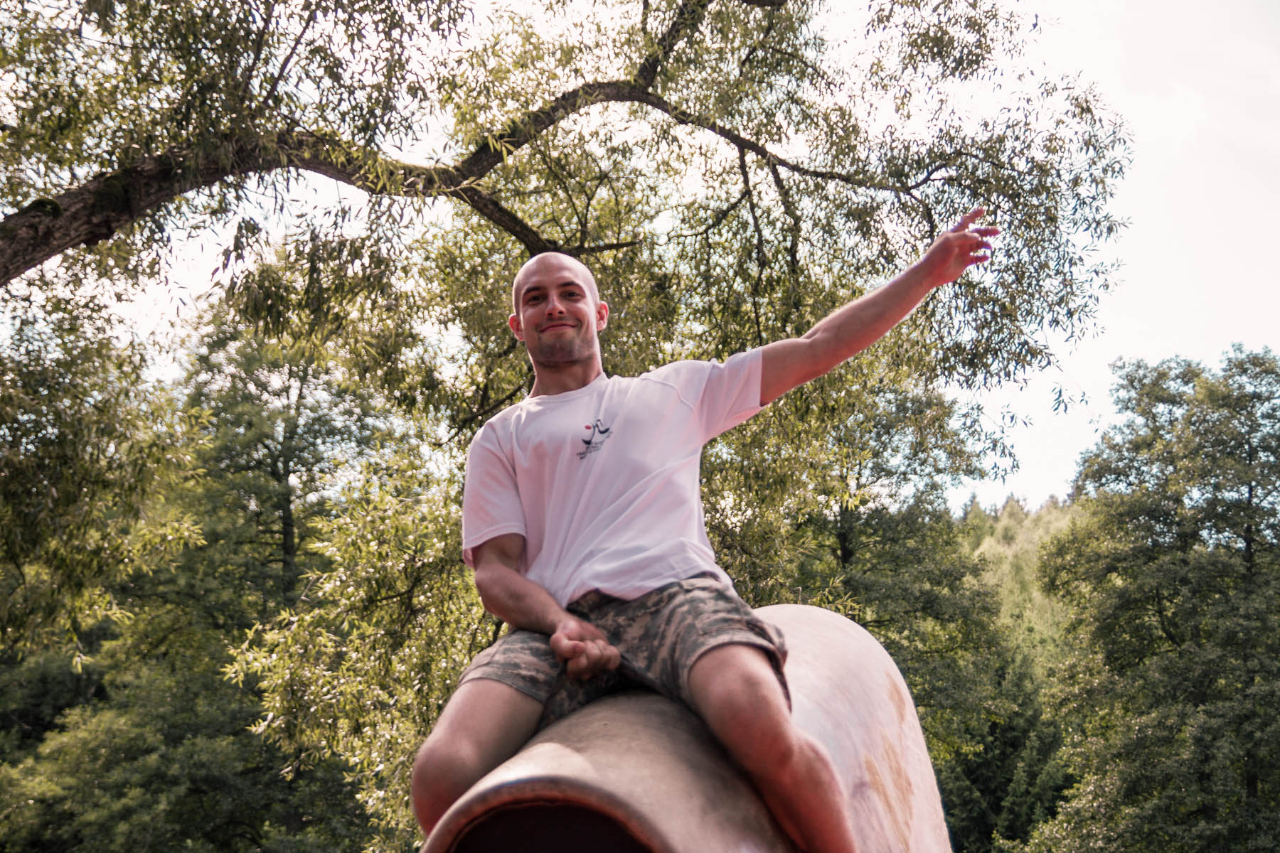 Den třetí letního soustředění: pěší výlet do Šiklova Mlýna a jízda na elektrickém býkovi.