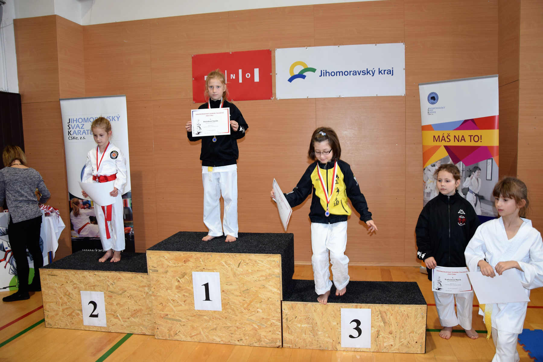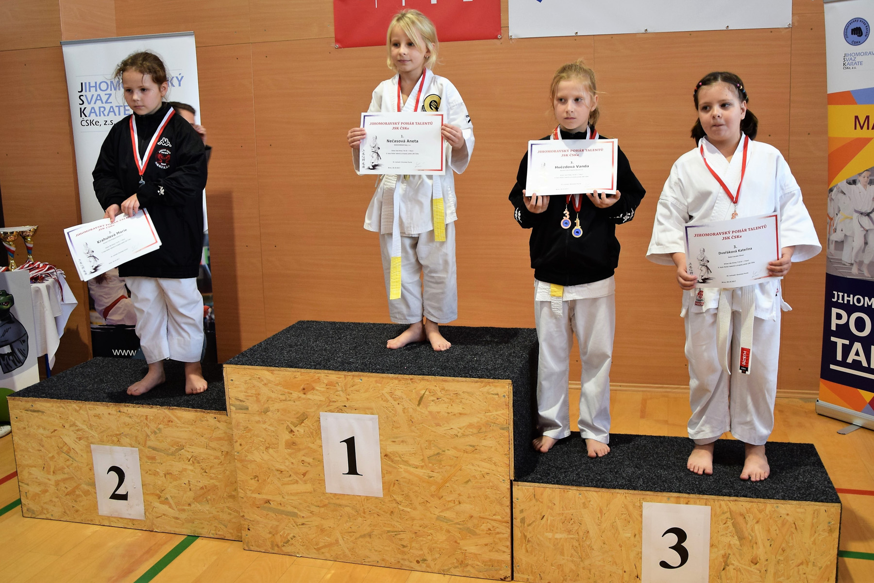 Vanda Hvězdová – 1. místo v kategorii aglity dívky (7-8 let). Marie Krahulová obsadila 4. místo ve stejné kategorii. Marie taky získala 2. a Vanda 3. místo v kategorii kihon ido (7-8 let) a kategorie kata beginner. Vanda získala také 2. místo v kategorii kumite beginner, kde Marie obsadila 3. místo. Obě získaly 3. místa v kategori kata mladší žákyně (7-9 let).
