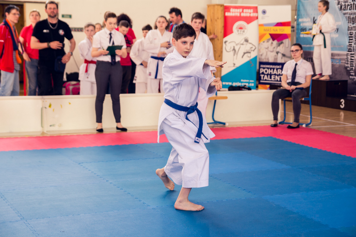 Dopoledne probíhala soutěž v disciplínách agility, kata a kihon v rámci soutěže Pohár talentů a Beginner cupu, kde si mohli atmosféru závodů vyzkoušet i nejmenší karatisté. Poprvé jsme mohli vidět větší rozdělení jednotlivých kategorií, věkové a vyspělostní. Záměrem tohoto rozdělení byla samozřejmě větší motivace závodníků.