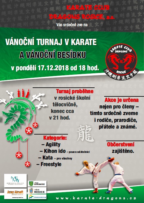 V pondělí 17. 12. 2018 proběhne v rosické školní tělocvičně oddílový vánoční turnaj a zároveň i besídka. Začátek je v 18hod. a konec dle skončení turnaje cca 21hod. Akce je určena nejen pro členy, tímto chceme srdečně pozvat i rodiče, prarodiče, přátelé a známé. Občerstvení zajištěno