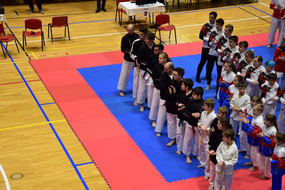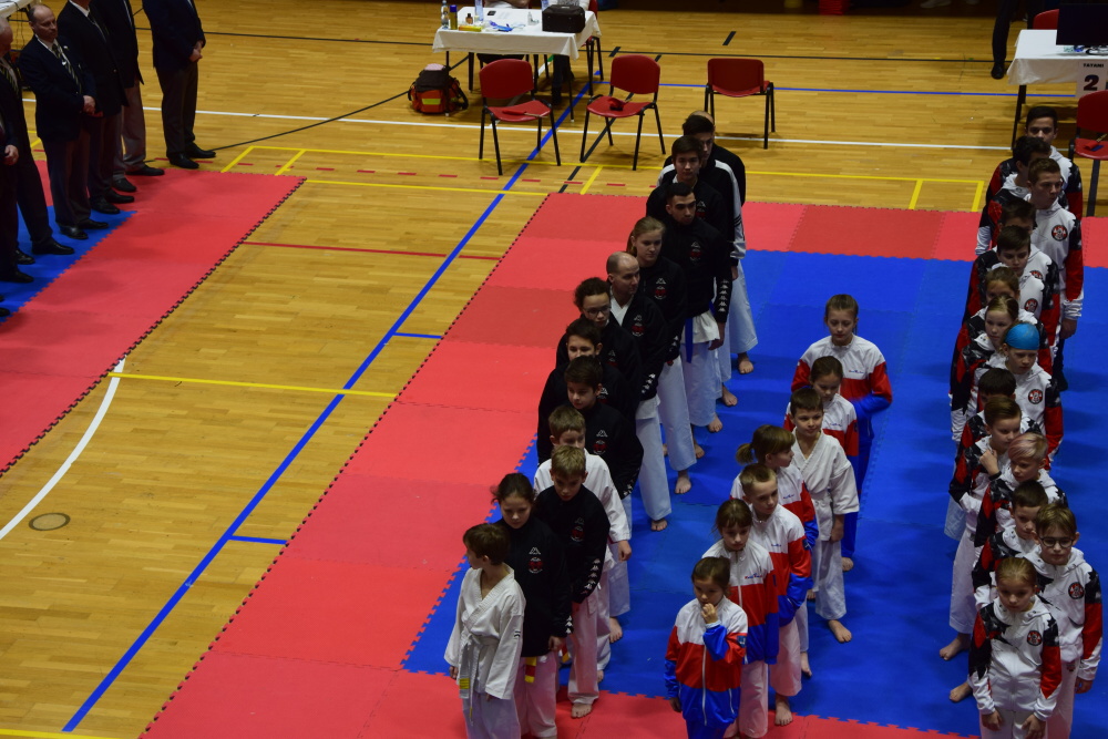 Po skončení poháru byl nástup a slavnostní vyhlášení. Odpoledne začalo 1. kolo NP v karate Goju ryu. Zde byl zbytek závodníků, viz nahoře. Celkem se zúčastnilo 106 závodníků z 16 klubů 164 startů.