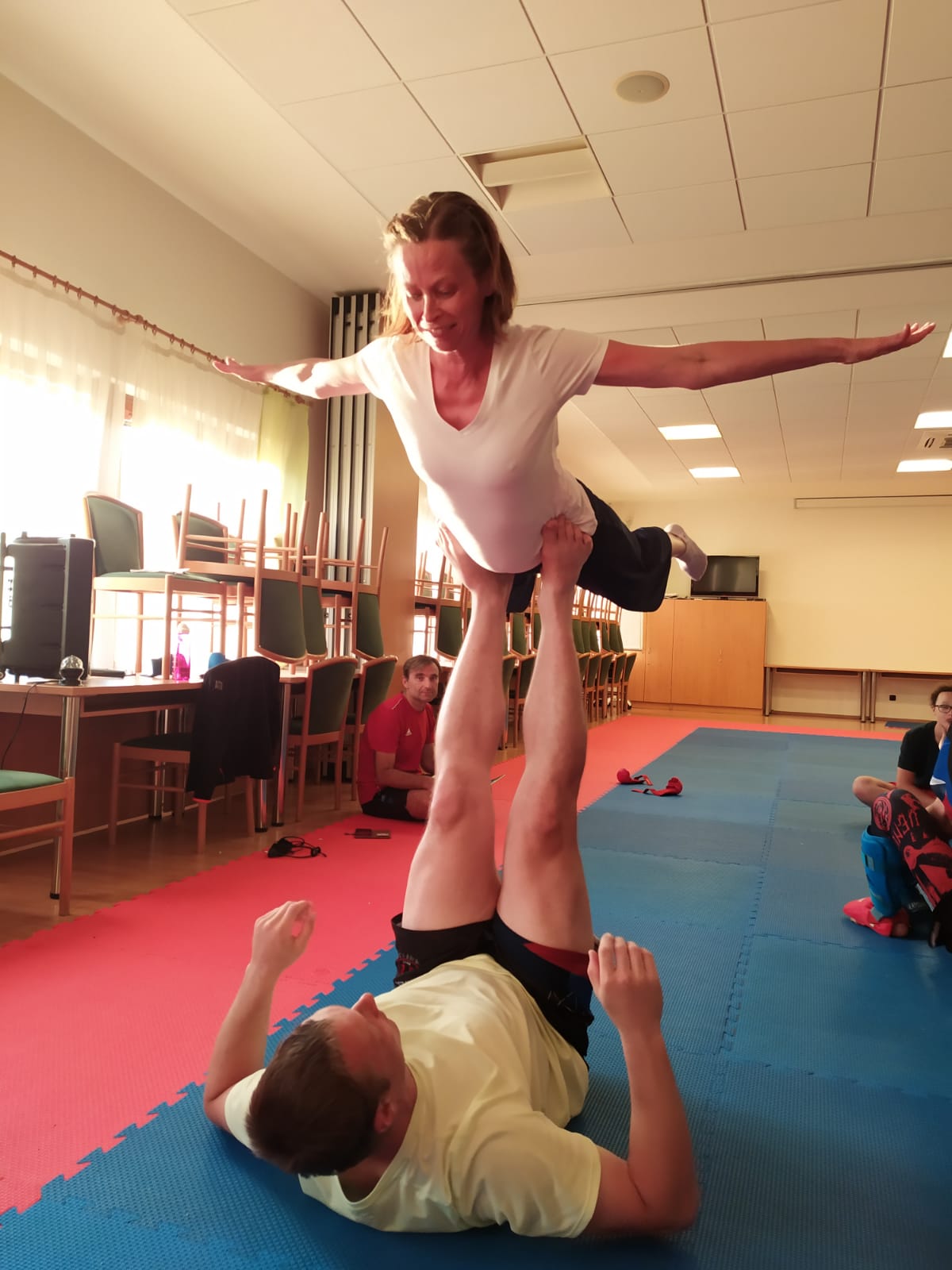 Nově jsme se po každém tréninku protahovali za pomoci jógy a ráno po rozcvičce „vítali slunce“.